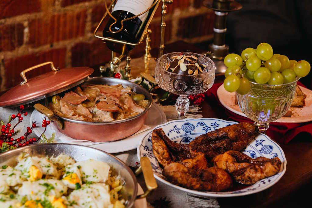 Para as ceias de fim de ano (foto de capa), a aposta é nos tradicionais salgados para a etapa das entradinhas, como as tradicionais Bolinhas de Bacalhau (R$ 60 – 20 unidades), o Croquete de Carne (R$ 60 – 20 unidades) e o famoso Risole de Camarão (R$ 65 – 20 unidades). Já entre os pratos principais, a casa portuguesa sugere o Arroz de Pato (R$ 180 – 1,4 kg) e o Cabrito assado no molho à Moda da Casa (R$ 220) acompanhado com arroz puxado no próprio molho, batatas coradas e farinha torrada.